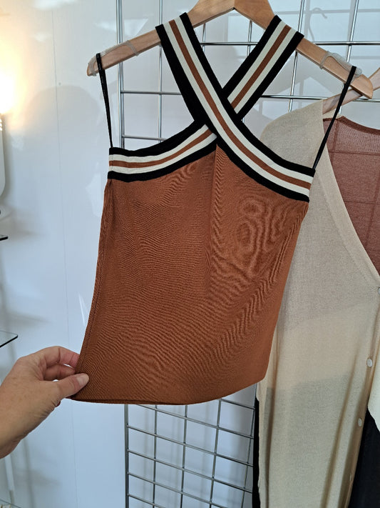 Cross front stretch knit top
