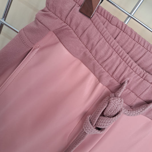 Half pleather trousers